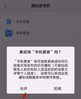 4、把通知栏的电脑管家选为启用,然后就可以看到红包提醒功能已经开启成功,QQ和微信再有红包就会第一时间提醒,避免错过红包咯。