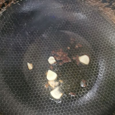 2、起锅放入适量油,放入蒜瓣花椒爆香。