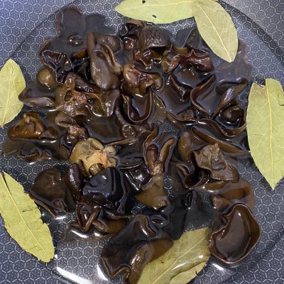 2、泡发好的木耳加清水和香叶入锅,煮40分钟左右,具体看购买的木耳品质,来决定煮至软糯的时间,亲们自己撑握