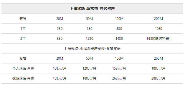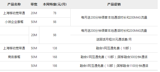 2017中国移动铁通宽带套餐价格表(以上海为例)
