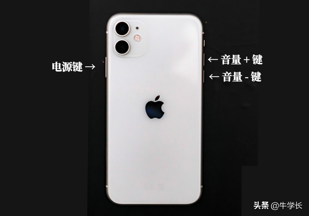 按住iPhone11两侧的【关机键】 + 【音量加键】或【音量减键】,还可同时按住这 3 个键。
