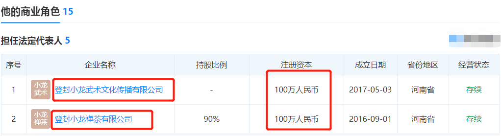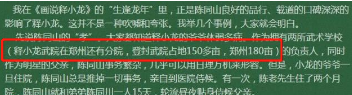 除校长、武术学校经理外,陈同山还有9家公司,涉及影视、餐饮、武术文化传播等各行各业。据报道,身价已达百亿。