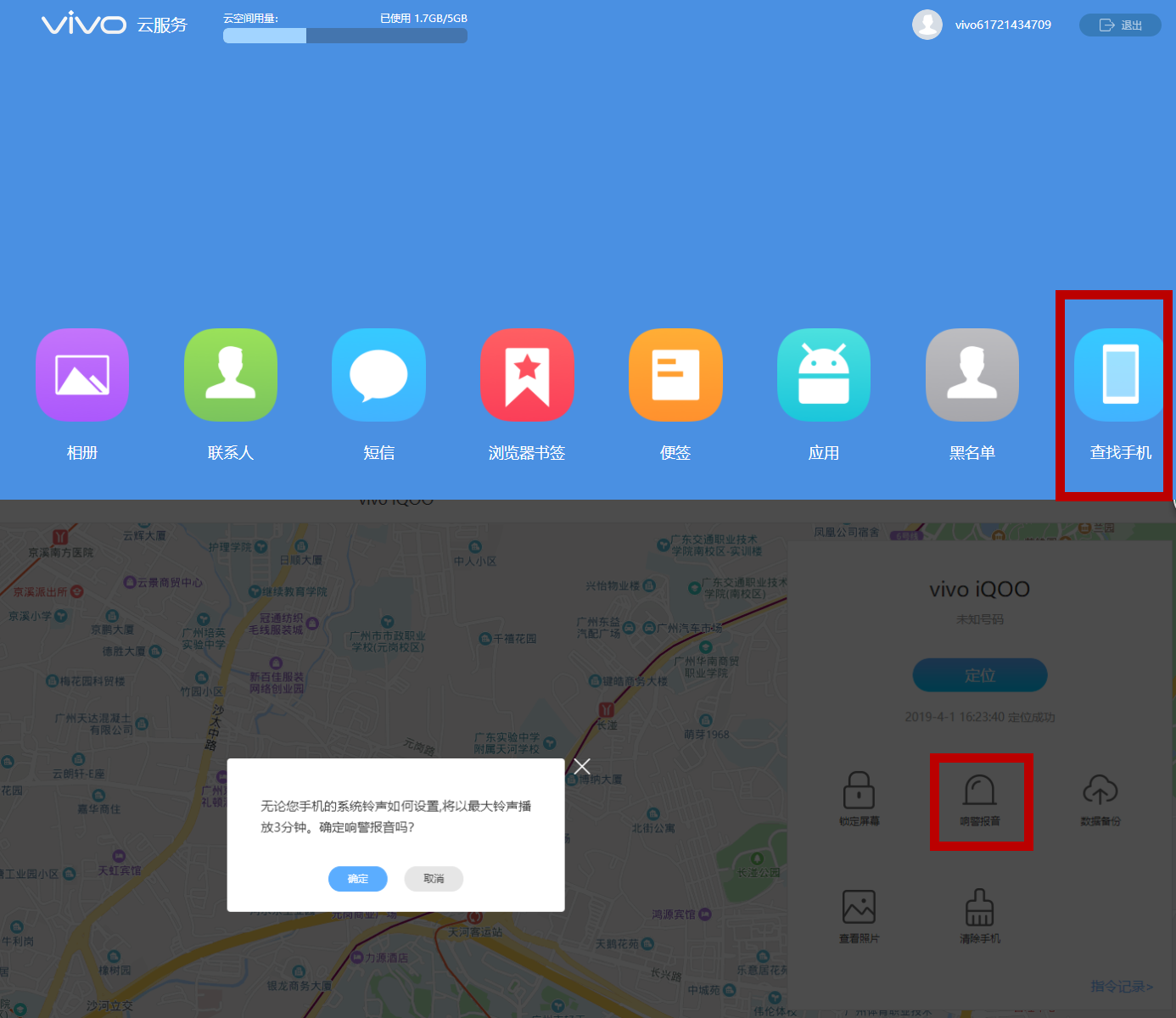 如果手机不慎丢失,在其他设备上进入云服务网站,点击查找手机,就可以显示手机的实时所