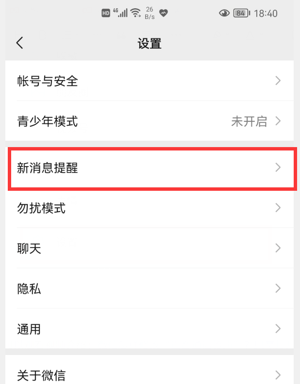 然后再点击“新消息提醒”,就进入到微信通知提醒的设置页面(如下图)。