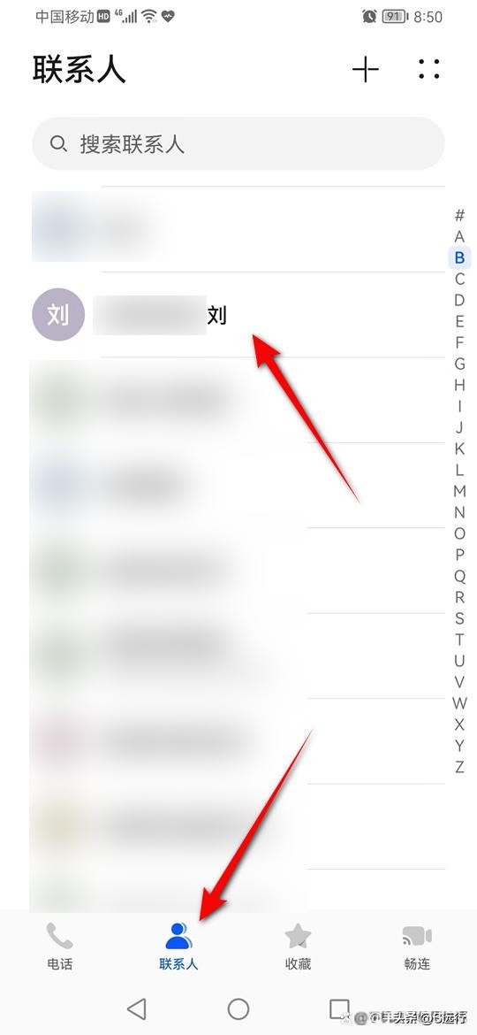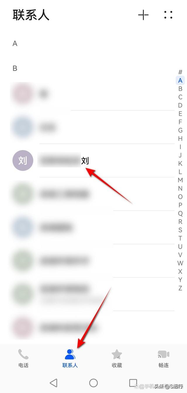 打开手机联系人列表,点击需要拉黑的手机联系人。
