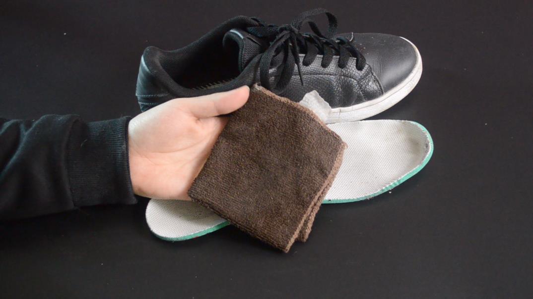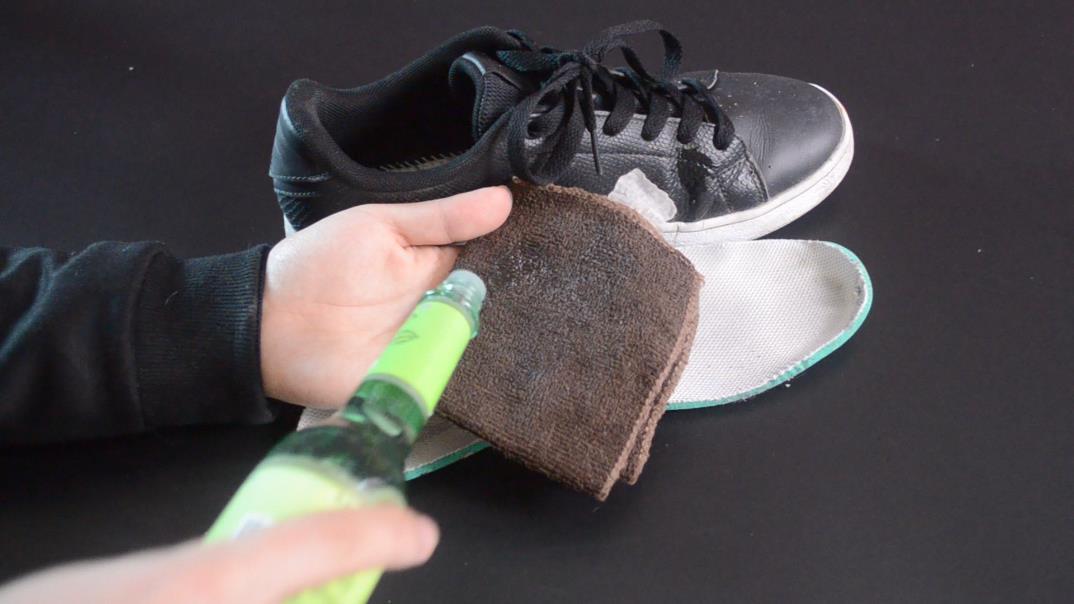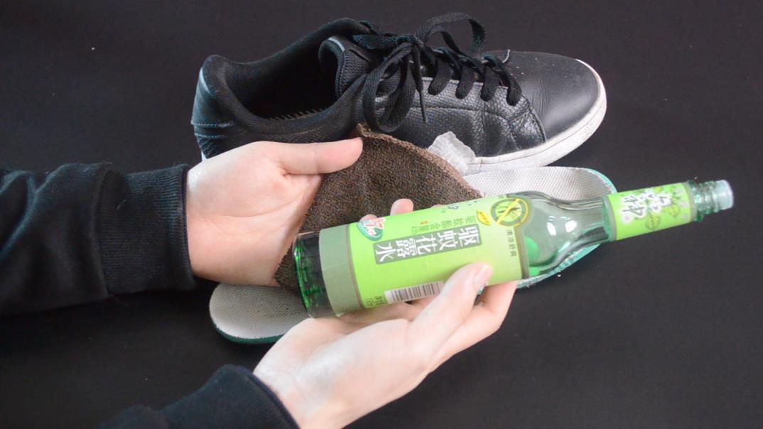 先鞋子里的鞋垫拿出来。再准备一条抹布,并且往抹布上倒一些花露水。用沾有花露水的湿布擦一擦鞋垫就能帮你轻松去除鞋臭味了。因为花露水里面含有酒精成分,它能杀菌消毒去除臭味。其次,酒精已挥发所以不用担心清洁完的鞋垫会湿哒哒没办法穿了。