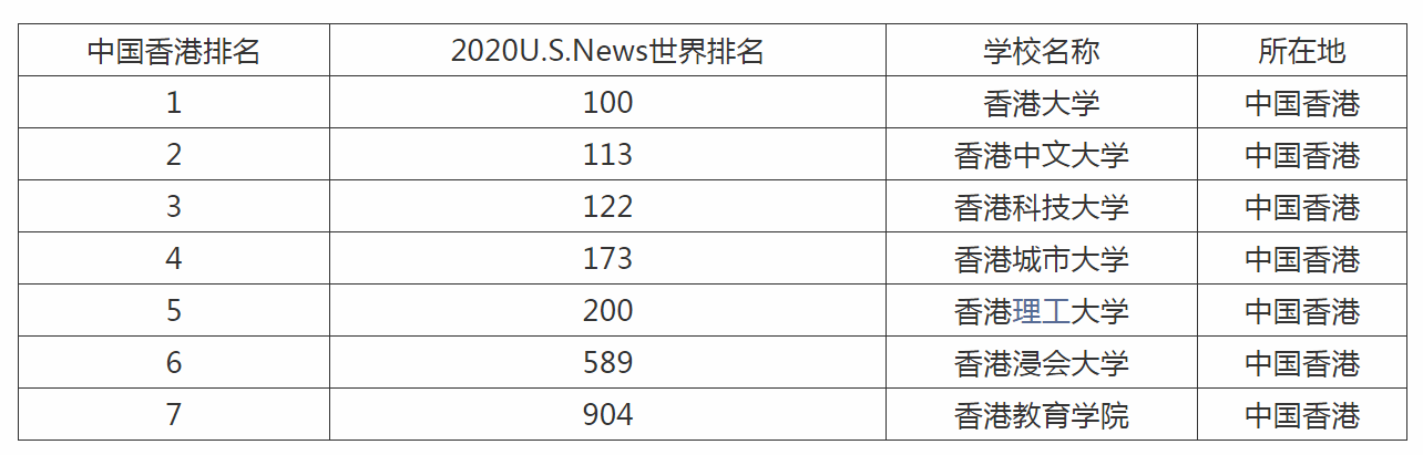 香港大学排名第一,香港中文大学排名第二。2020US News版】