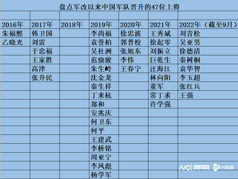 军改以来,军队陆续晋升上将47人。 制图:赵琳萱