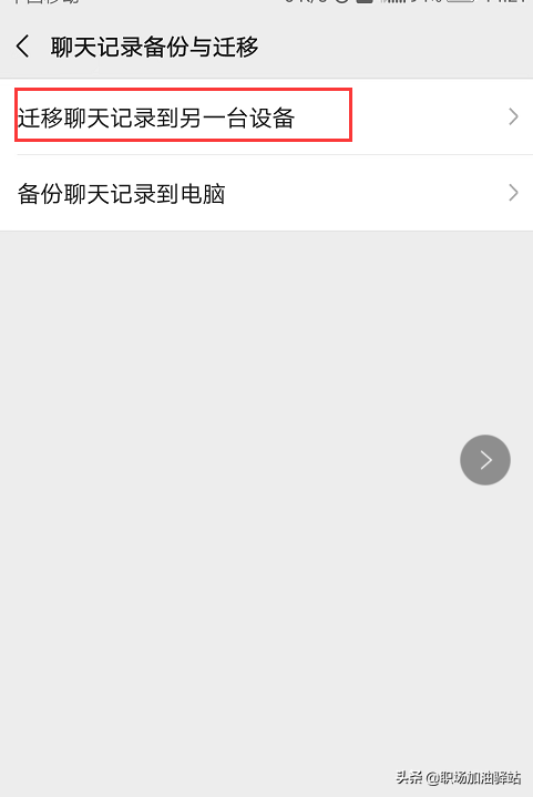 4、选择“迁移聊天记录到另一台设备”: