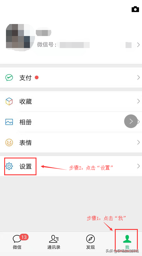 1、打开手机微信→点击“我”→点击“设置”:
