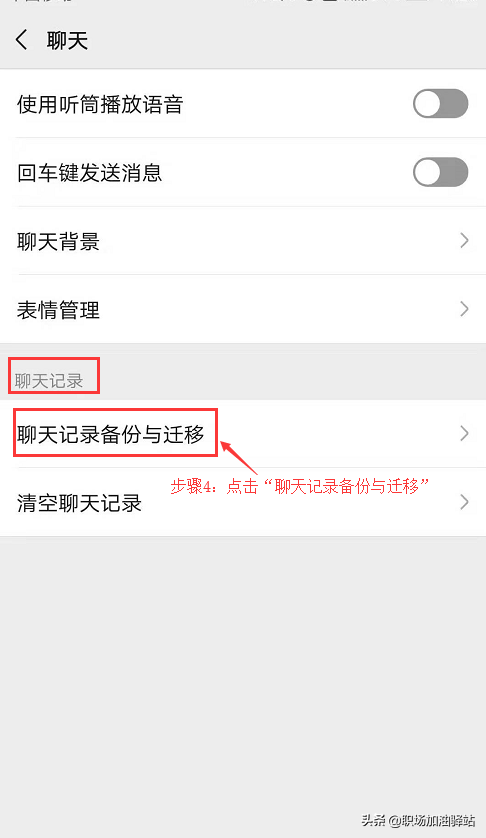 3、点击“聊天记录”里的“聊天记录备份与迁移”: