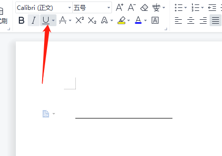 在Word中我们需要输入下划线如图,我们点击带下划线的U,点击一下后按住空格键就会出现下划线了,而且不用担心在下划线上输入文字会出现间断了。
