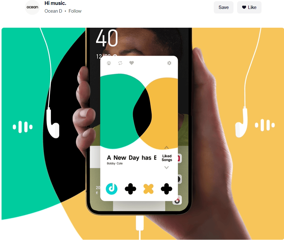 这是设计师曝光的音乐 App 的设计概念图。可见卡片 UI 将会继续升级,采用悬浮设计。这让我想到了鸿蒙 OS 上滑图标启动应用卡片。