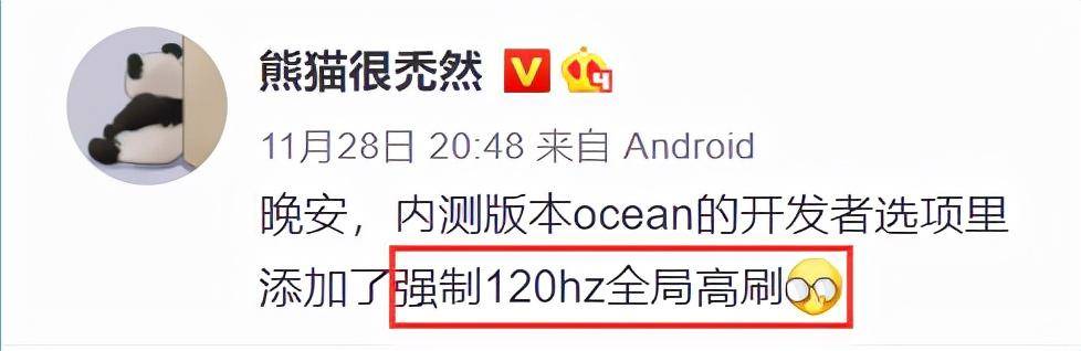 同时博主也爆料了,将在系统开发者选项中会添加强制全局高刷!