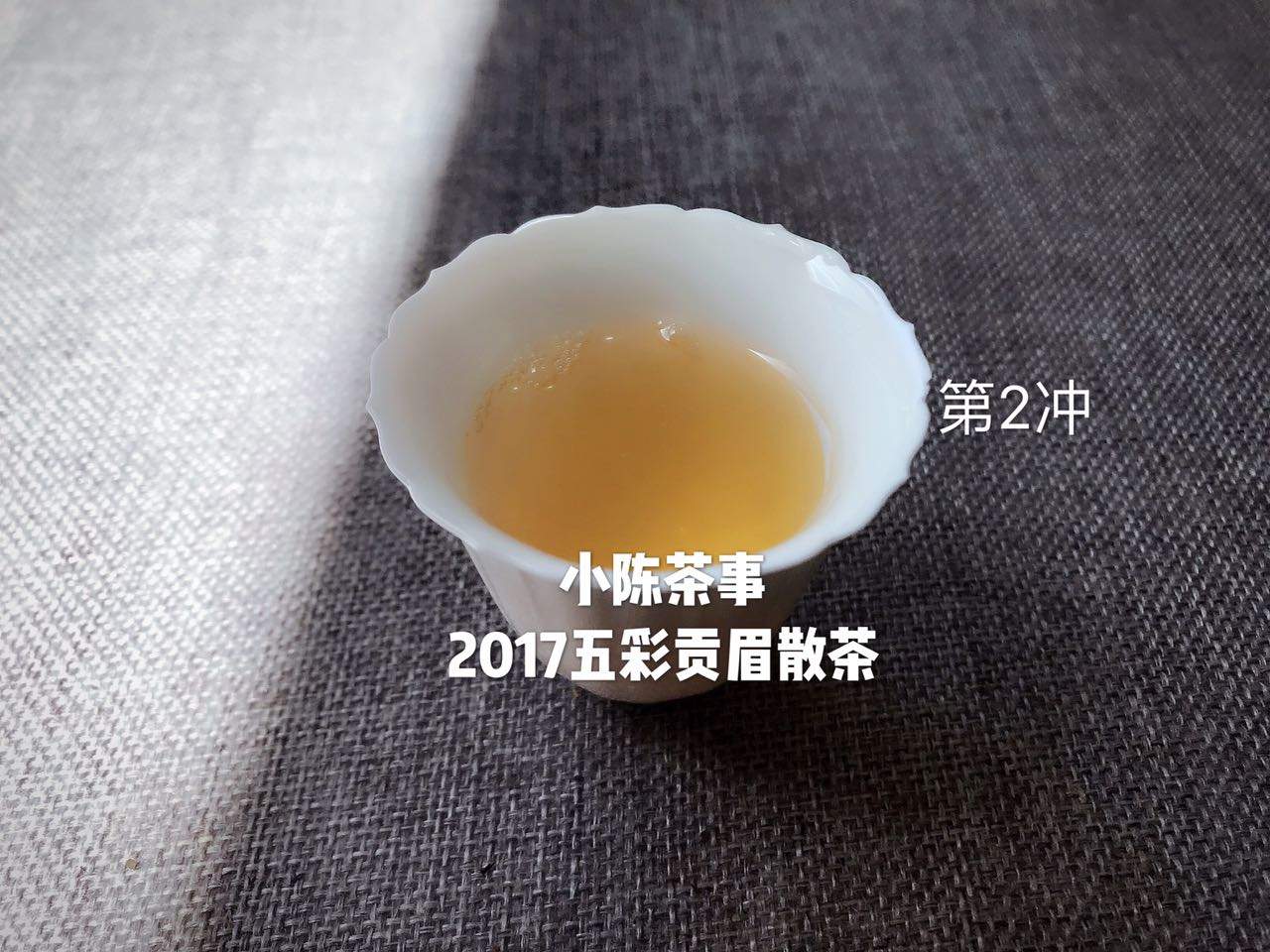 贡眉的汤色第一泡时颜色会较浅,呈现蛋清色,随着冲泡次数的增加汤色也会逐渐加深,汤色呈橙黄或深黄。