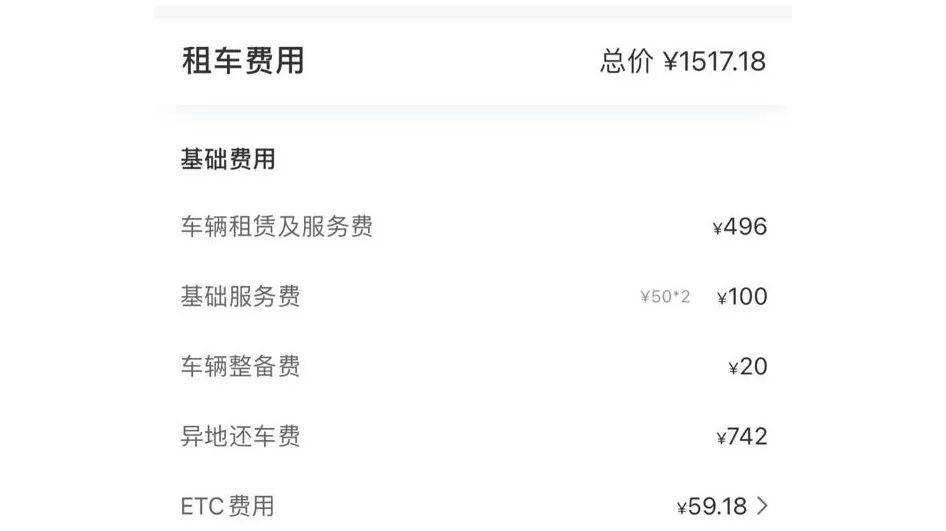 “每辆车(单项)费用看上去还好,加起来价格惊人。”李青吐槽道,光一项异地还车费用,就高达742元。