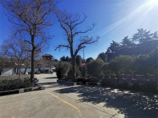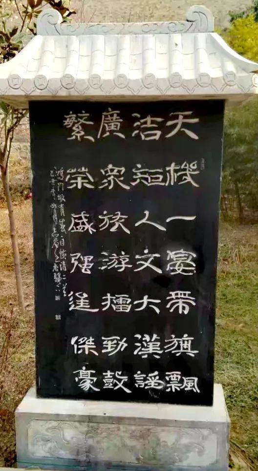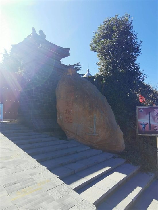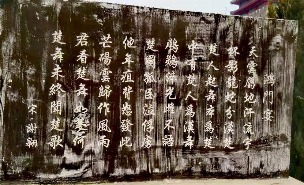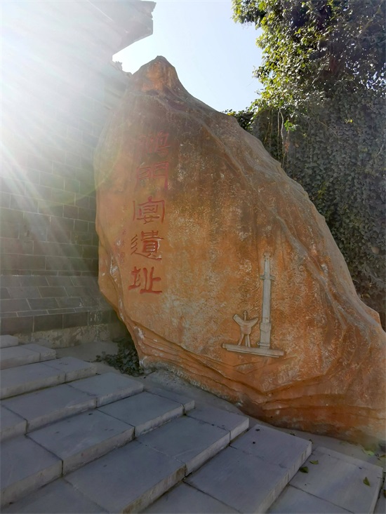强烈的阳光,使阴影处的鸿门宴遗址标识模糊不清。