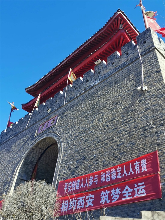 艳阳蓝天,关楼高耸,城墙巍巍,彩旗猎猎。