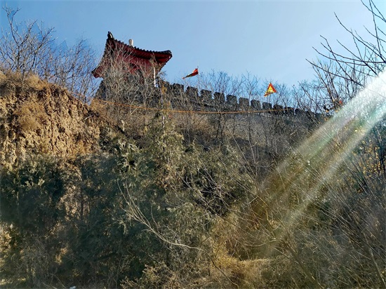 高高塬台上,特色建筑笼罩在阳光下。