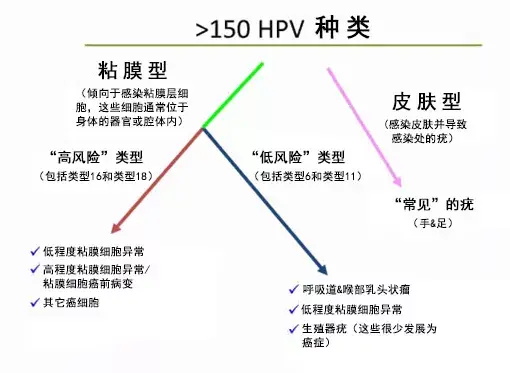 此图显示了HPV类型的不同组以及每个组可能导致的问题。