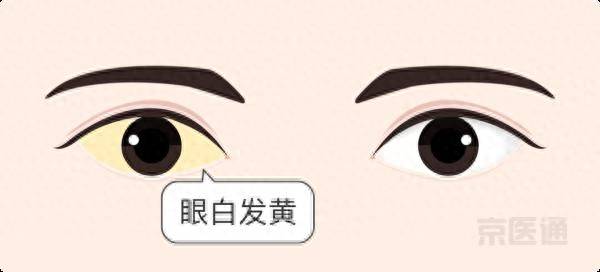 淡黄色的眼白,通常是由血液中胆红素积聚引起的黄疸的征兆,也称「巩膜黄疸」。