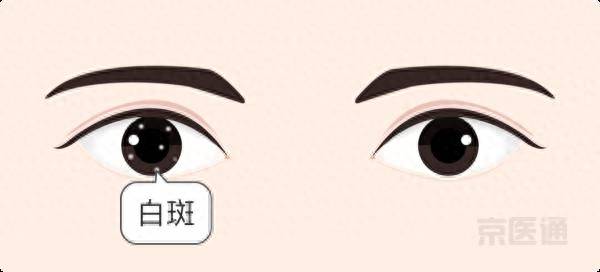 角膜上的白色斑点,有可能是「角膜溃疡」。通常眼部会有疼痛,对光线敏感,眼里有异物感等症状。