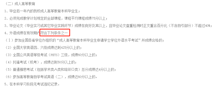 我们拿秦皇岛这边的燕山大学的成人高等教育的学士学位申请条件来举例: